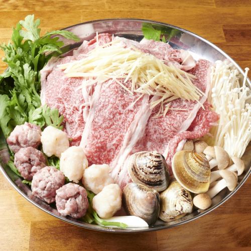 和牛四万十しょうが鍋コース5,000円(税込)2時間飲み放題付コースもご用意あります。6,000円(税込))