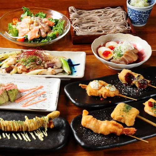 【2H飲み放題付】かわの屋コース◆海老、牛かつなどの串かつやげそねぎ塩炒めなどが味わえる!4,500円(税込)